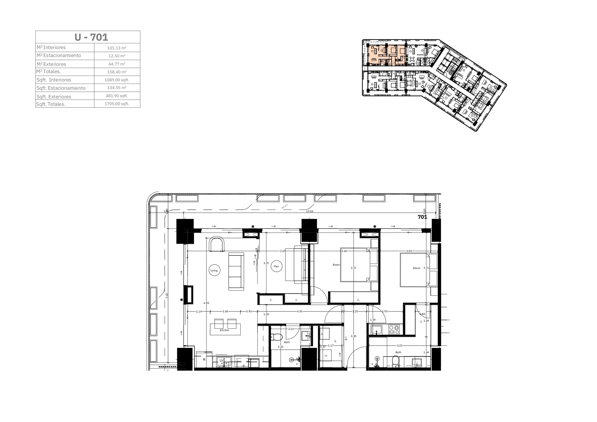 Recámaras: 2 REC + Flex LOCKOFF Baños: 2 Tamaño: 158.40 m2