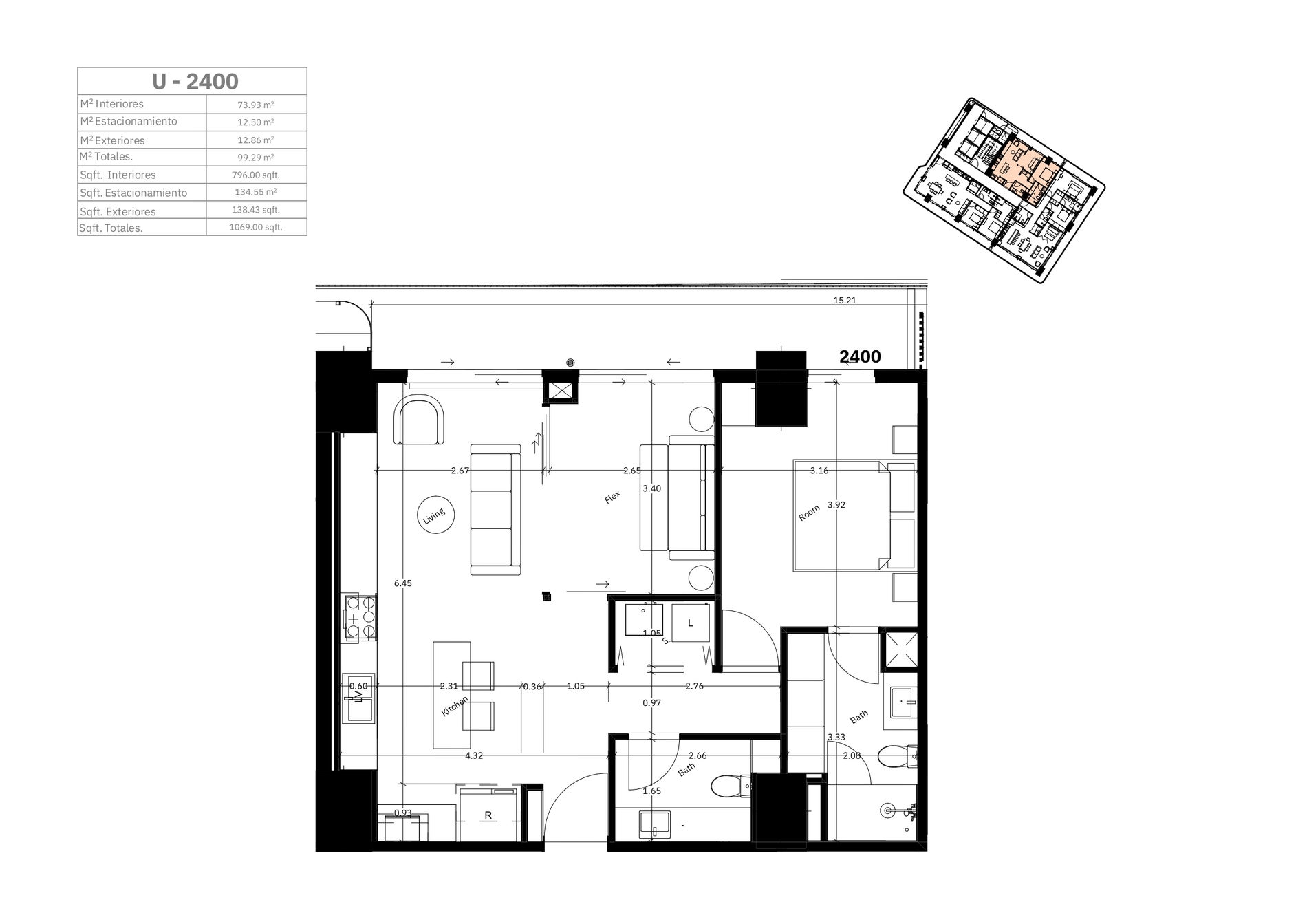 | Interiores | 73.93 m2 |