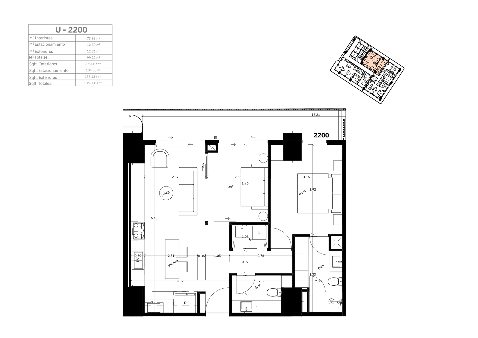 | Interiores | 73.93 m2 |