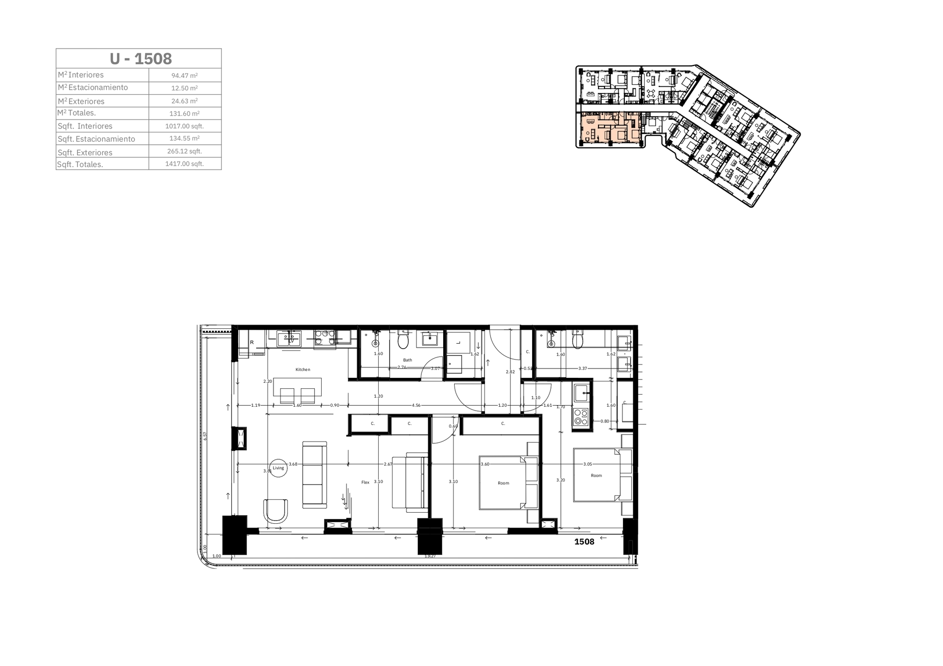Recámaras: 2 REC + Flex LOCKOFF Baños: 2 Tamaño: 131.60 m2