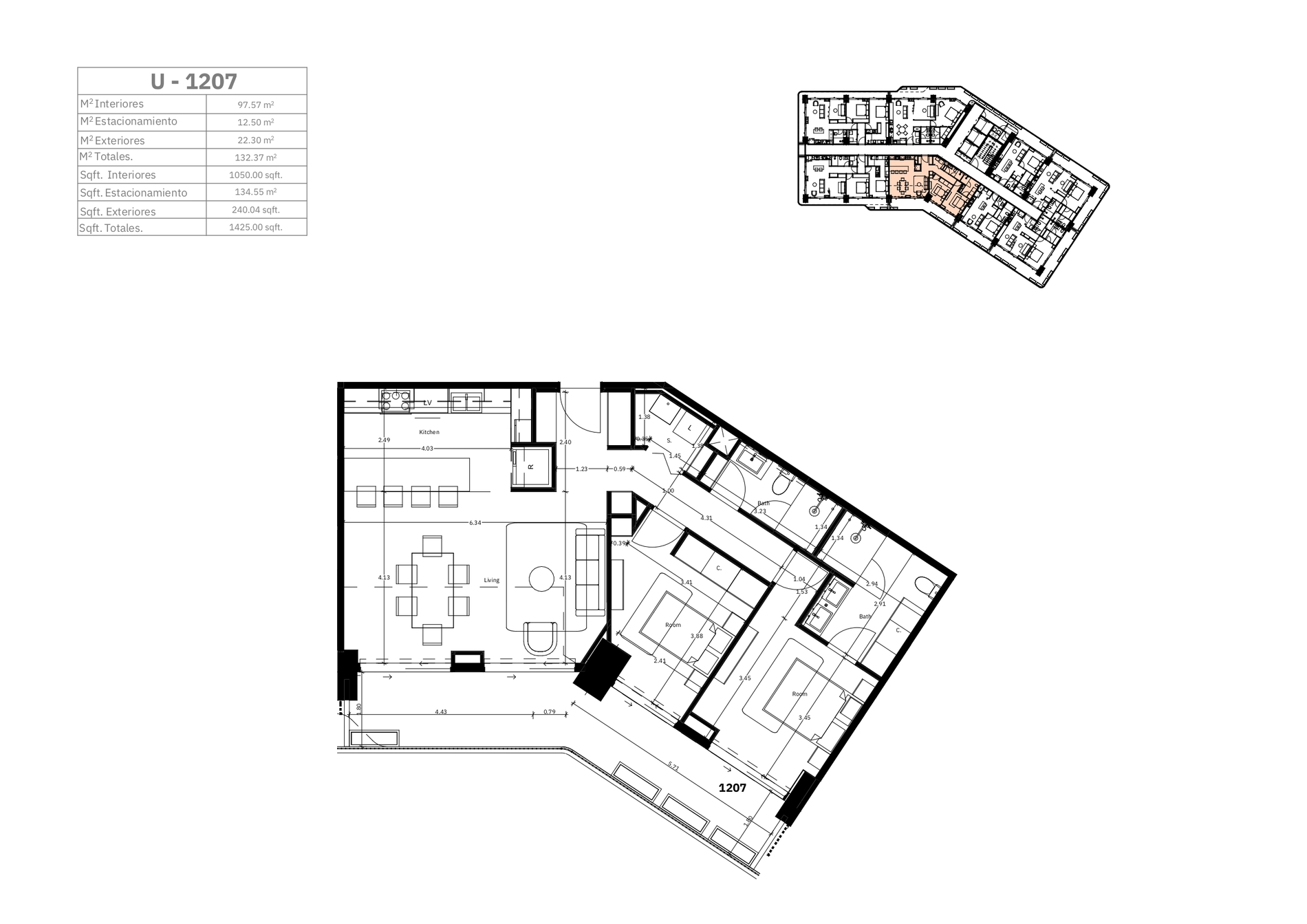 Recámaras: 2 REC + Flex LOCKOFF Baños: 2 Tamaño: 132.37 m2