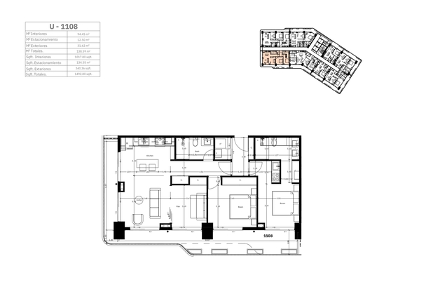 Recámaras: 2 REC + Flex LOCKOFF Baños: 2 Tamaño: 138.59 m2